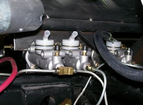 | Plumbing the new master cylinders. |