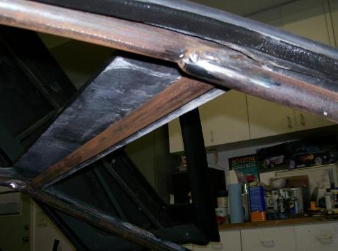 | Welded in a new steel frame around windshield opening. |