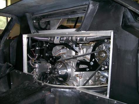 | The center section of the fire wall is removable for engine access. |